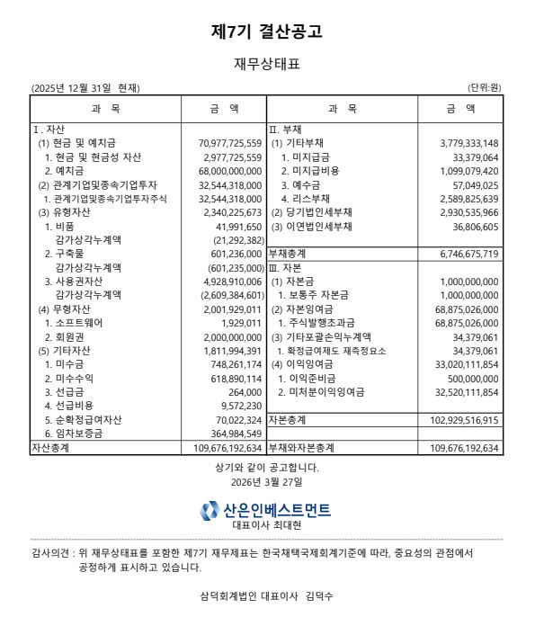 제7기 결산공고